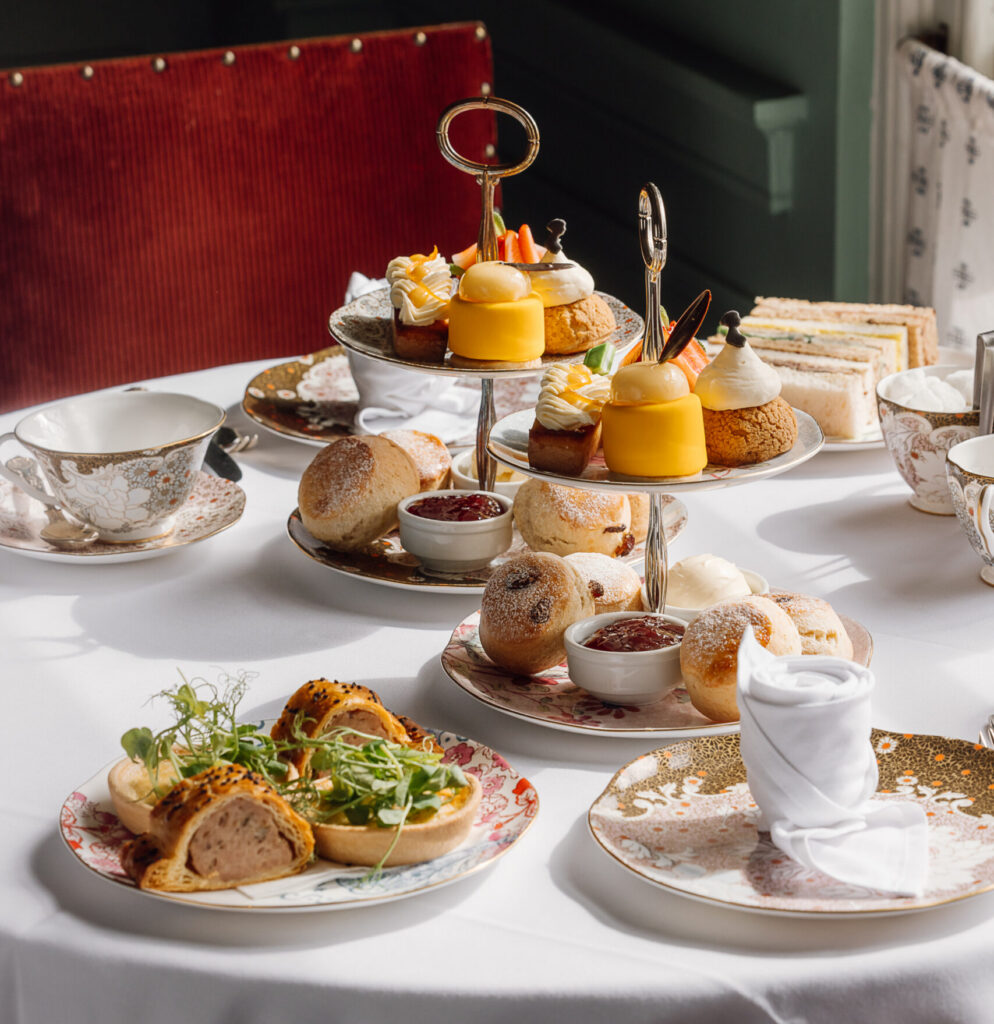 There’s always a choice of fresh finger sandwiches with classic fillings like smoked salmon and free range egg mayonnaise. And other savoury treats too, like black pudding and apple sausage rolls, depending on what’s fresh from the kitchen that day.